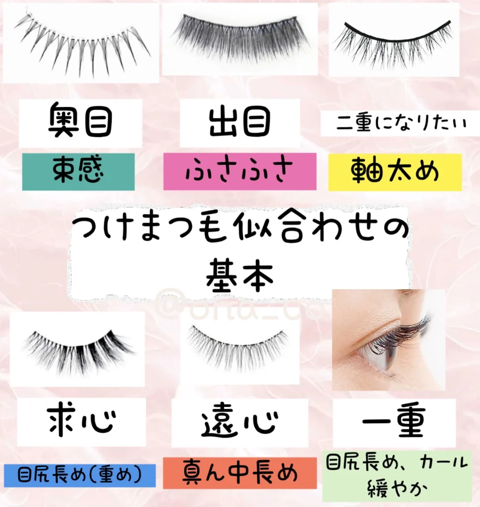 女装される方にとってカラコン、二重、そしてつけまつ毛がかわいいメイクの三種の神器だと思っています。(残りはヘアでウィッグ) つけまつ毛に挑戦しようと思っても、立ちはだかるのがあまりに多い種類です。 例えば、ドンキホーテの壁を埋め尽くすアイテムの多さ…種類ありすぎて選べない。 実はコレ鉄板の似合わせ方法があります。 奥目➡️まつ毛とまつ毛の間隔がある方が良いから令和の束感まつ毛が得意です。ふさふさが逆に苦手です。黒目に光が入らなくなるからです。 出目➡️割とどのタイプ...