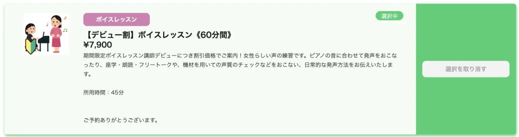下記予約ページから「デビュー割ボイスレッスン」をご選択ください⬇️