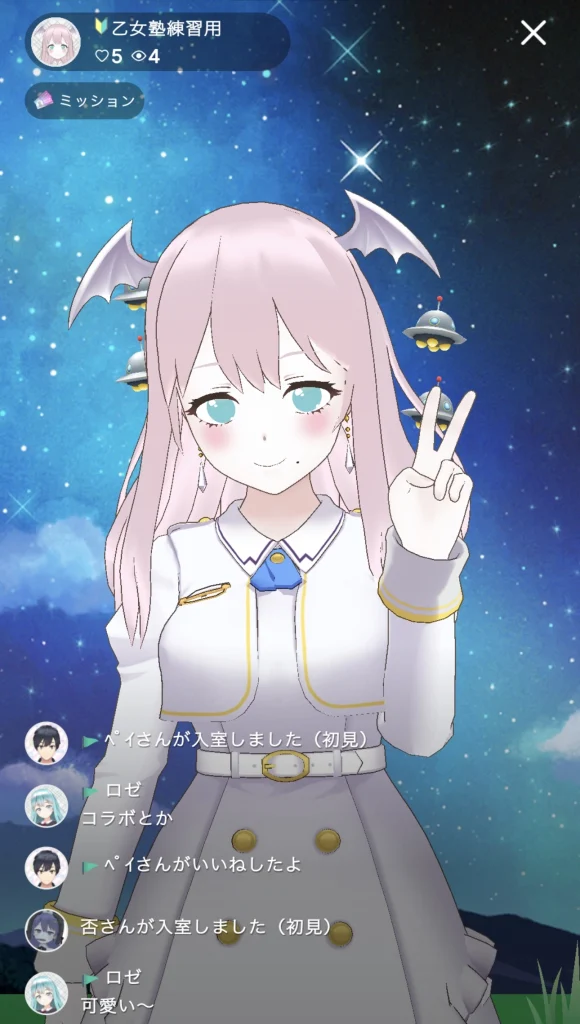 REALITYの乙女塾デモアカウントを使用し、講師と一緒に仮想空間での配信を体験します。
